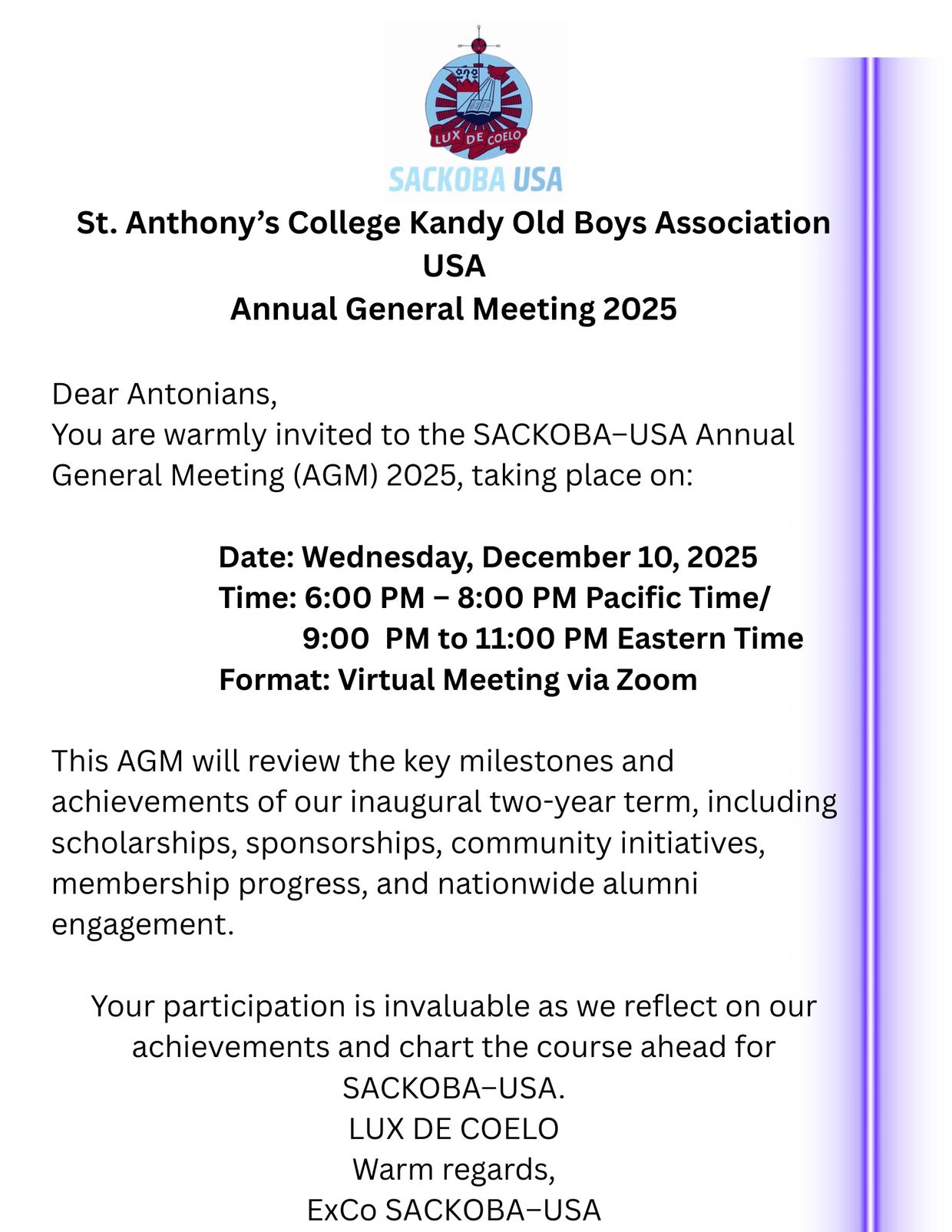 Your membership not only comes with exclusive benefits but also plays a vital role in funding the projects and initiatives to support our beloved Alma Mater St. Anthony's College Kandy and out membership.
