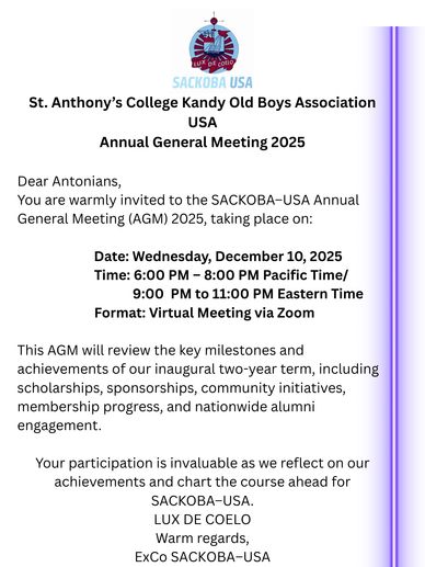 SACKOBA BALL USA 2024 took place on December 14th, 2024, at The Orleans Resort & Casino in Las Vegas. This year, we had the honor of welcoming Dr. Lakshman Denepitiya, one of the most distinguished scholars and athletes from St. Anthony's College Kandy, as our esteemed Chief Guest. His presence added a special touch to the occasion.